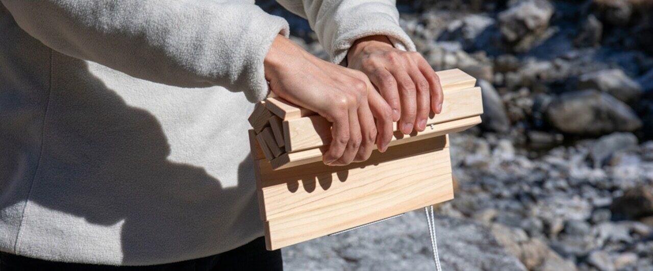 信州産の貴重な木曽ひのきにこだわって作った「ひのき舞台」は、アウトドアサウナに最適な天然素材を用いたサウナマットです。サウナの中はもちろん、外気浴のシーンでも活用できます。